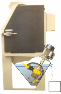 A szivattyú és a motor kiszerelhetősége A merülő szivattyú egyik legfontosabb jellemzője, hogy a koptató közeg nem tömíti el, amíg a gép áll, például az éjszaka folyamán. Ez az egység gyorsan kiszerelhető a zsompból a gép hátulján, anélkül, hogy a zsompot le kellene üríteni. Valamennyi rögzített tartozék, mint a szűrő és a keverőfúvóka, a házra van erősítve, ami azt jelenti, hogy a szivattyú néhány perc alatt kiszerelhető, ha szervizelésre van szükség. A motor elektromos csatlakozása és a szórófúvóka csatlakozása is gyorsan oldható. |