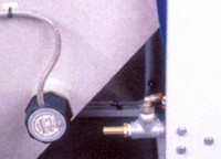 1.4.15. A lábra szerelt szabályzó és nyomásmérő A nedves szemcseszórás lehetőséget teremt különböző felületminőségek előállítására, ami az alkalmazott levegő nyomásától függ. Bizonyos esetekben a szivattyú nyomása maga is elegendő egy hatékony polírozásra, anélkül, hogy préslevegőt használnánk. Az AQUBLAST berendezésen jól hozzáférhető helyen található egy nyomásmérő és egy szabályzó, hogy a kezelő esetenként be tudja állítani a megkívánt nyomást. |