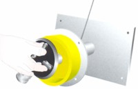 1.4.9. Benyúló nyílások Két kar számára van benyúló nyílás kialakítva a berendezés homlokfalán, amely köré egy-egy gumikesztyű kifordított szára van karimával felfogatva, így szükség esetén a cseréjük néhány perc alatt megoldható. |